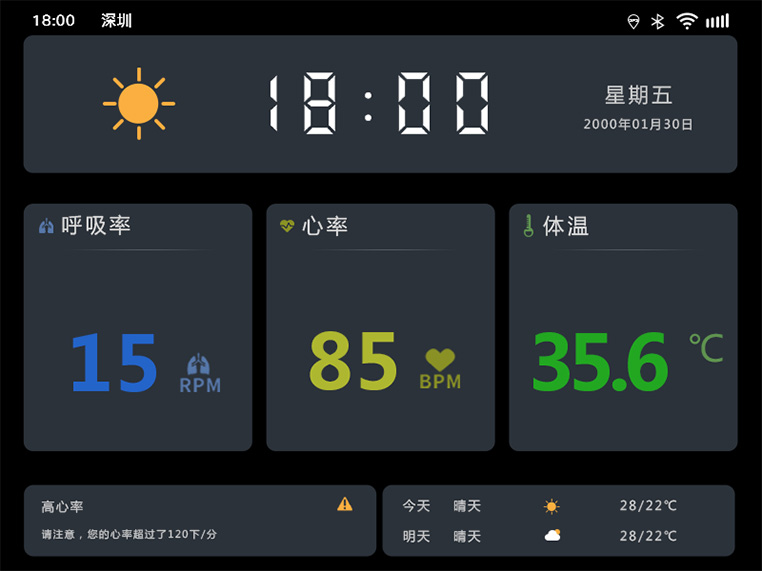 智能监护仪是一款高精度,无接触式睡眠健康监测产品,采用先进的雷达探测技术和4G通信技术,智能监测心率,呼吸,体温等体征情况。